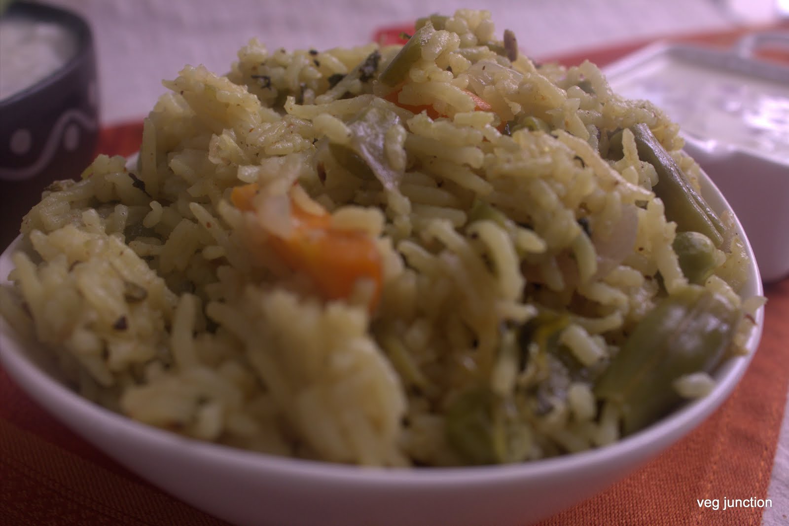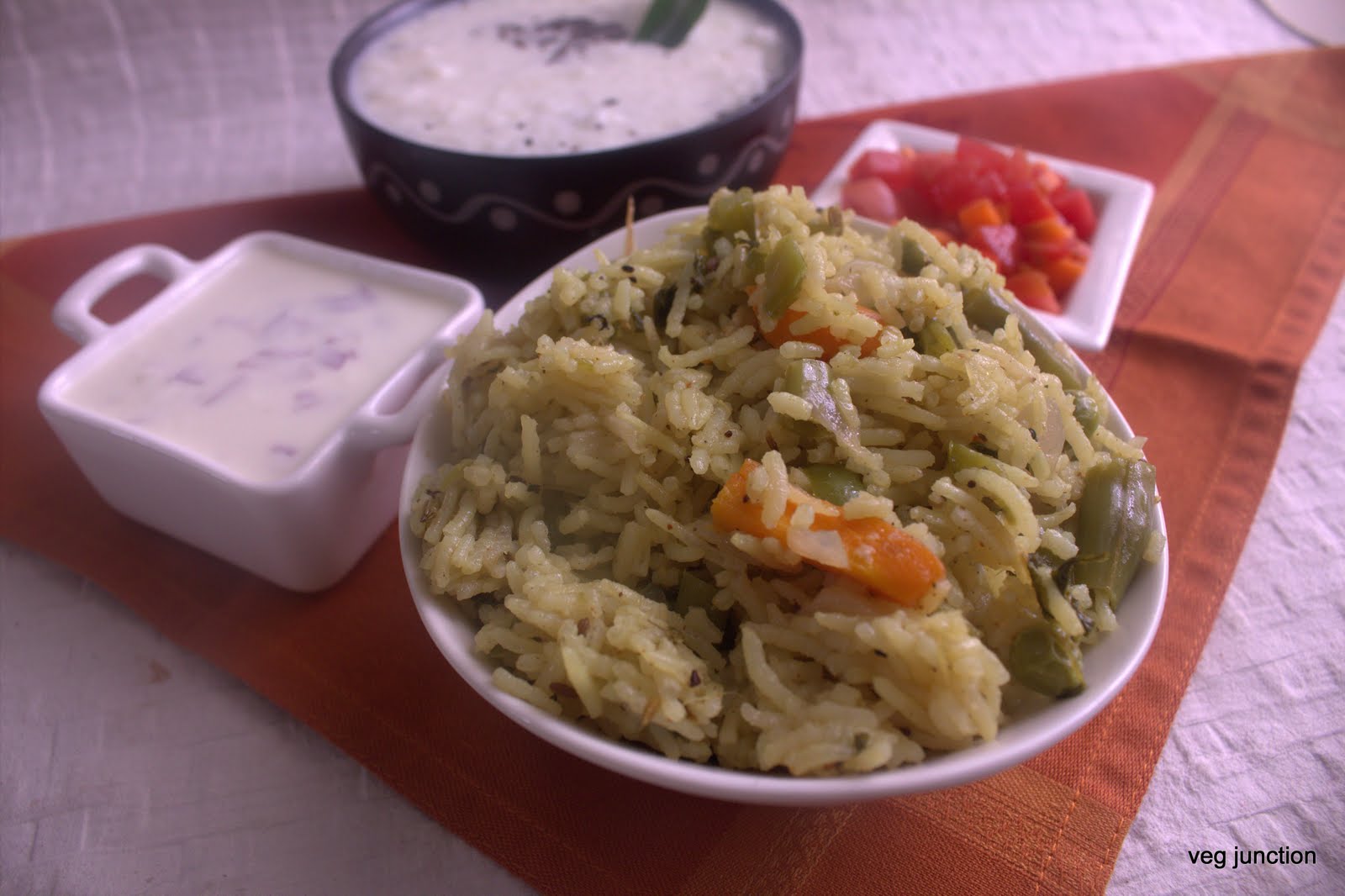 Today the lunch Menu for Blogging Marathon#10 by Srivalli was a little simple then yesterday.Vibha wanted Vegetable Biryani. So teamed it with Onion Raita, some fresh salad and our ever staple Thair saadam:-)LOL!!I have come across numerous recipes of vegetable biryani bu this is the one I make often . Vibha loves the flavour of this biryani with the mint in it.