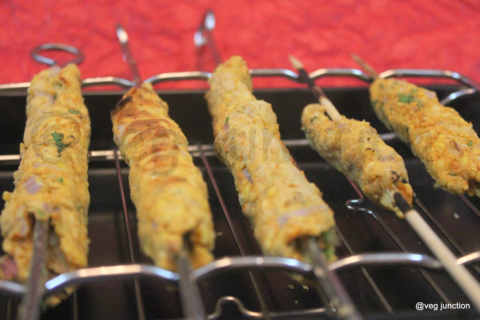 According to wiki Kebabs originated in Persia. It mostly meat pieces arranged on a skewer and grilled on a charcoal barbeque. But we come across many variations of the kebab like shallow fried, deep fried, grilled, baked and even steamed.If you are a vegetarian like me and want some vegetarian variations of this kebab , you are are the right place. For the next seven days, you can virtually taste different types of kebabs at Veg junction:-)