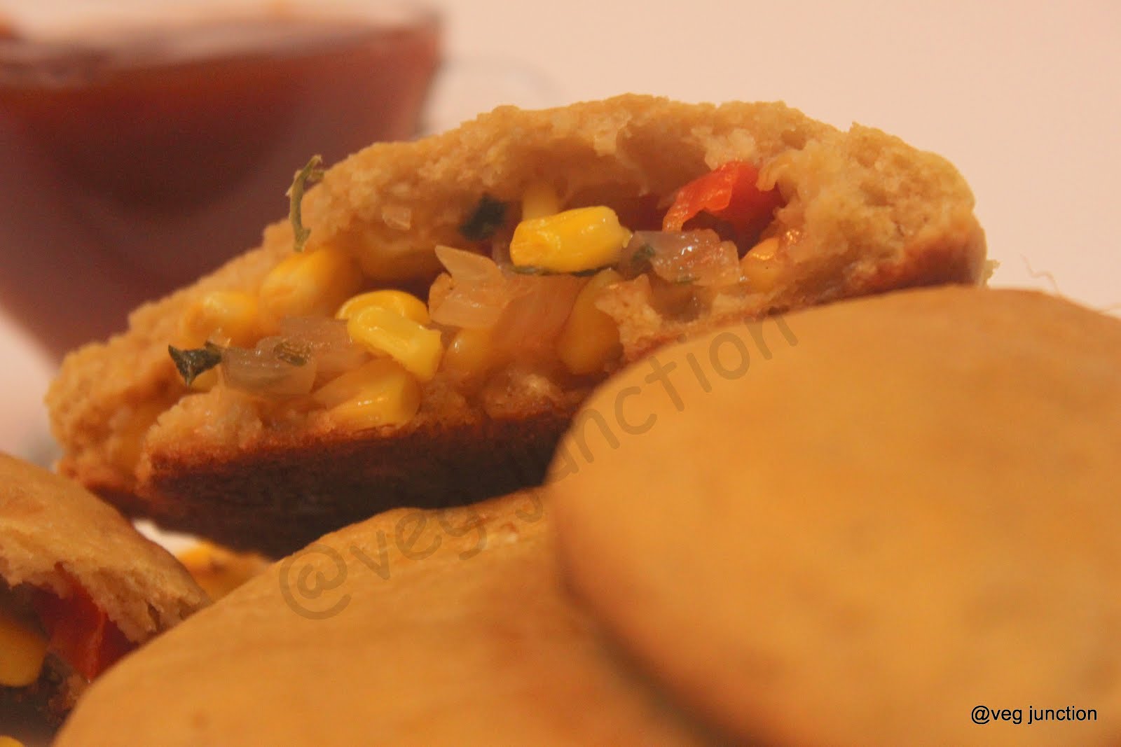 For the month of March Kalyani announced Wheat and Corn as the main 2 ingredients for the Magic Mingle Challenge.Initially I thought I will cook a stuffed flat bread but I had to break from this long baking Hiatus and this was one good reason for it and thus came Whole wheat corn stuffed buns into picture:-)These whole wheat buns are not definitely as fluffy as those baked with all purpose flour, but we cannot deny the fact that these buns are more healthy and nutritive too.These are not deep fried, no Maida, vegetable filled…..To all those health freaks out there…this is a perfect recipe to kill those hunger pangs without guilt!!!!!!